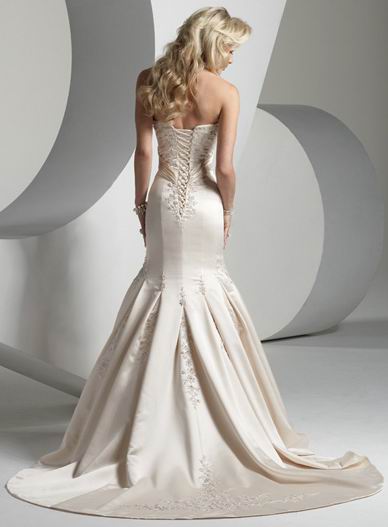 Ivory Strapless Discont Embroidery Satin Mermaid Floor legnth Graceful Wedding Dress