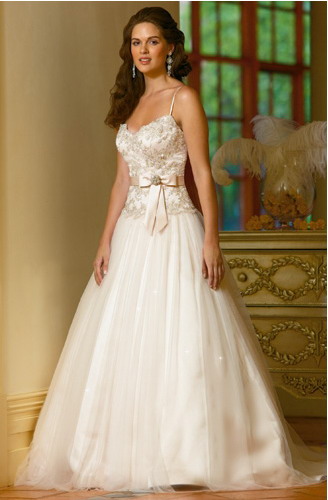 Satin, tulle, lace, beading