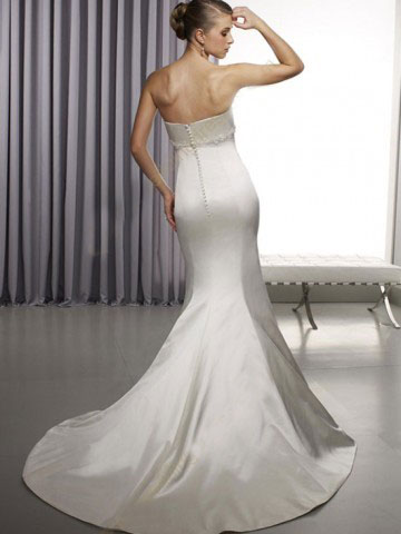 This kind of wedding dress features stapless design,beading and embroidery, mermaid trumpet silhouette,floor length,made of satin.Bracelet,earrings,necklace and accessories are excluded.