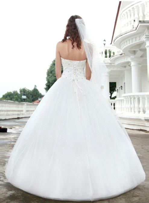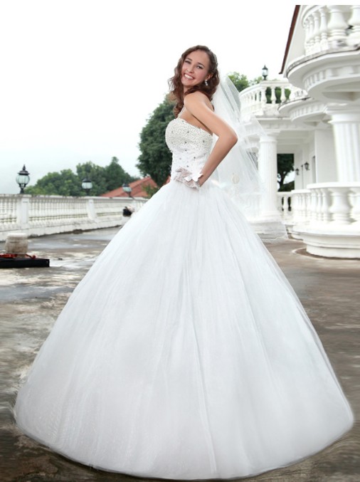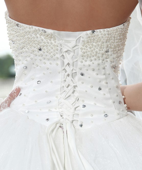 This kind of wedding dress features strapless design is popular inwinter。