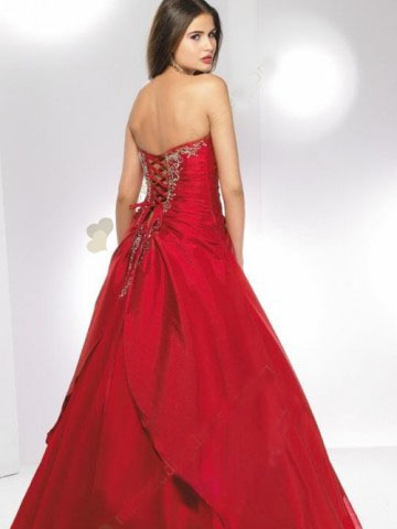 • Red Ball Gown Strapless Beading Organza Satin Wedding Dress