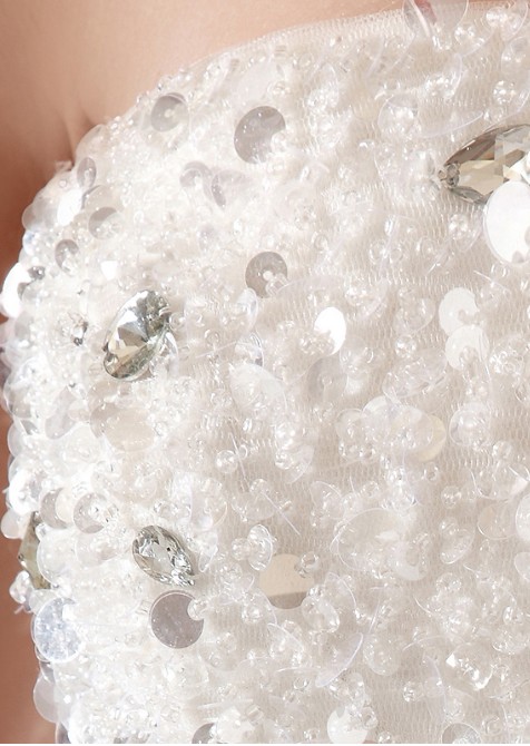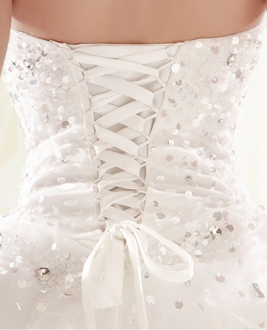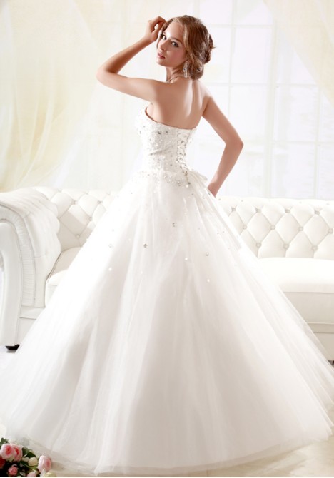 - Bow-back silk strapless gown