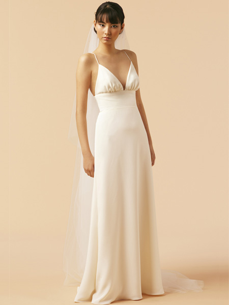 Sexy Empire waist Sheath/ Column Designer V-Neck Spaghetti Straps Wedding Dress at discount price