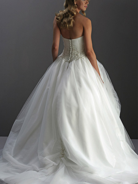 Strapless Flat Embroidery in waist Princess Organza/ Chiffon Ball Gown Wedding Dress