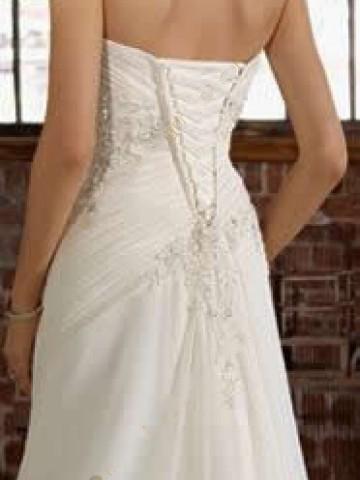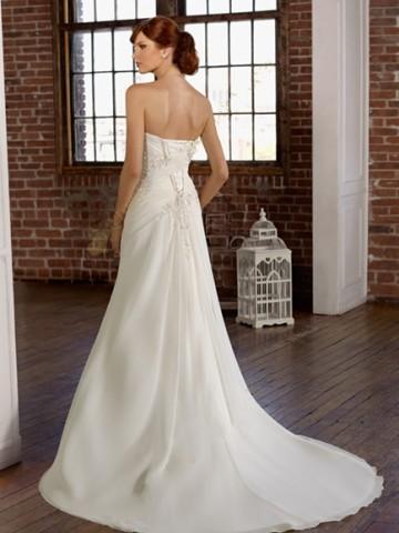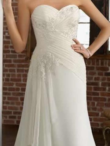 • strapless sweetheart asymmetrical bodice applique lace chiffon