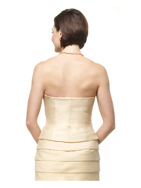 Ecru yellow Pleated layers Tea Length Strapless Mother of Bride and Groom Dress